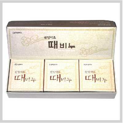 | 기타사항 | •중량 : 100g(수분포함)x 3p •7x 6.5x2.5cm(비누) 23.5x9.5x3cm (박스) •소듐팔메이트,한방분말,글리세린 |